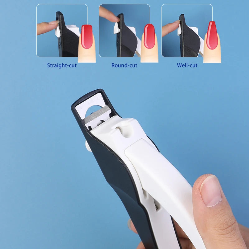 • Squeeze the handle firmly to cut. Use built-in nail file to file rough edges after trimming.
